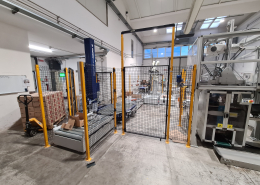 Made-to-measure plant for selecting technical items and placing them in the appropriate box. The camera selects the pieces, orients them correctly, and the mechanical arm then places them in the box. Each piece must be placed in the appropriate compartment. After that, once the box is full, it is closed and transported by a belt with rollers.