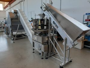 Confezionamento di contenitori ad uso farmaceutico, dotato di sistema contapezzi. Questo impianto permette di contare i pezzi da confezionare, per poi imballare i contenitori che verrano utilizzati a scopo farmaceutico.